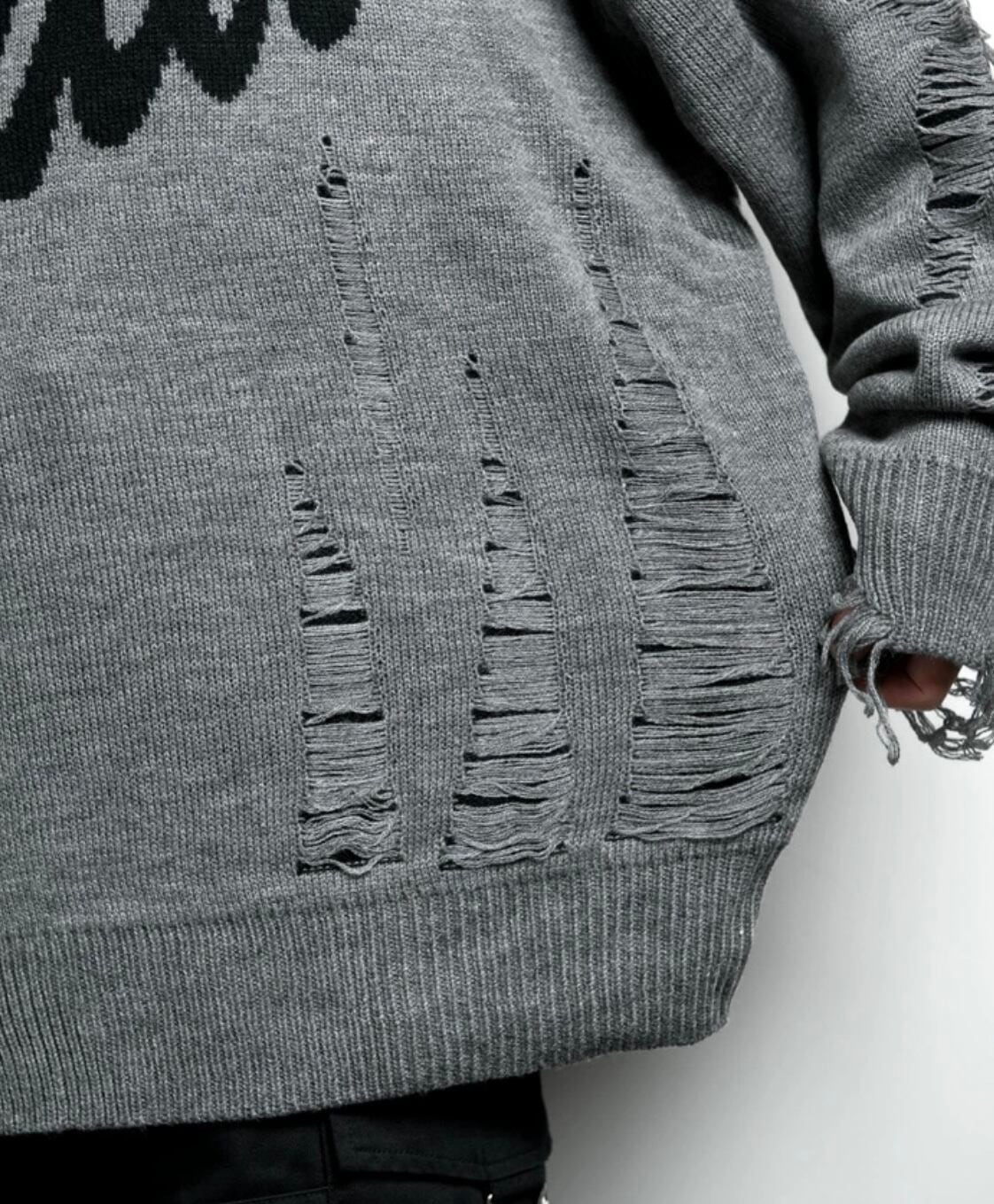 【Backstage pass】(バックステージパス) MONTEREY(モントレー)ロゴジャガード オーバーサイズ ダメージニット NGS2304 ロンティー ユニセックス サブカル 地雷系