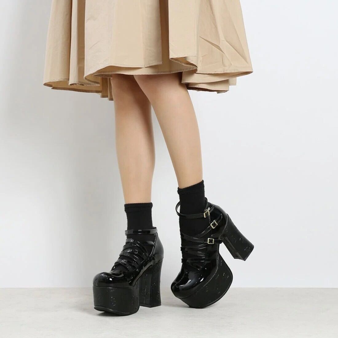 スナップボタン仕様で着脱も楽に行える一足です。ゴス、パンク、ロック、ゴシック